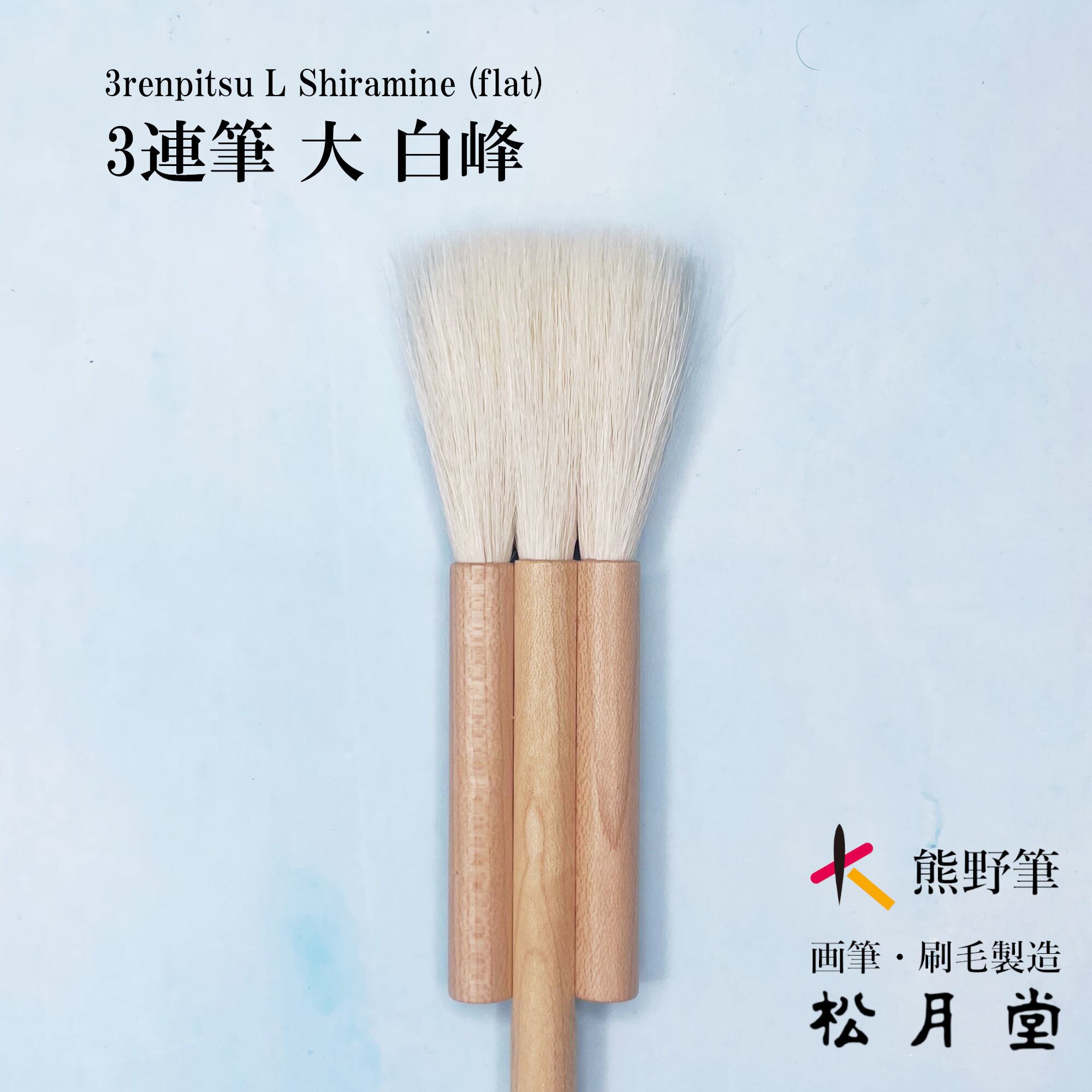 弊社松月堂では日本画や水墨画などの様々な画筆、アニメ用筆、刷毛等を製造しております。当該公式オンラインショップにて取扱していない筆や詳しい情報にご興味がございましたら、「松月堂メインサイト」ボタンより弊社メインサイトへお越しください。